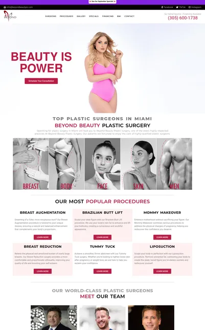 Custom-built website for a plastic surgery clinic.