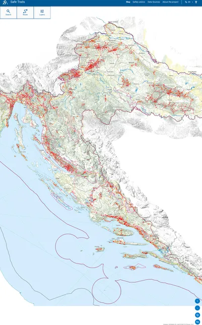 Interactive map of the Republic of Croatia, is intended for hikers and excursionists. The application enables the creation of custom routes, searching and exploring terrains, trails, facilities, climbing areas, and peaks.